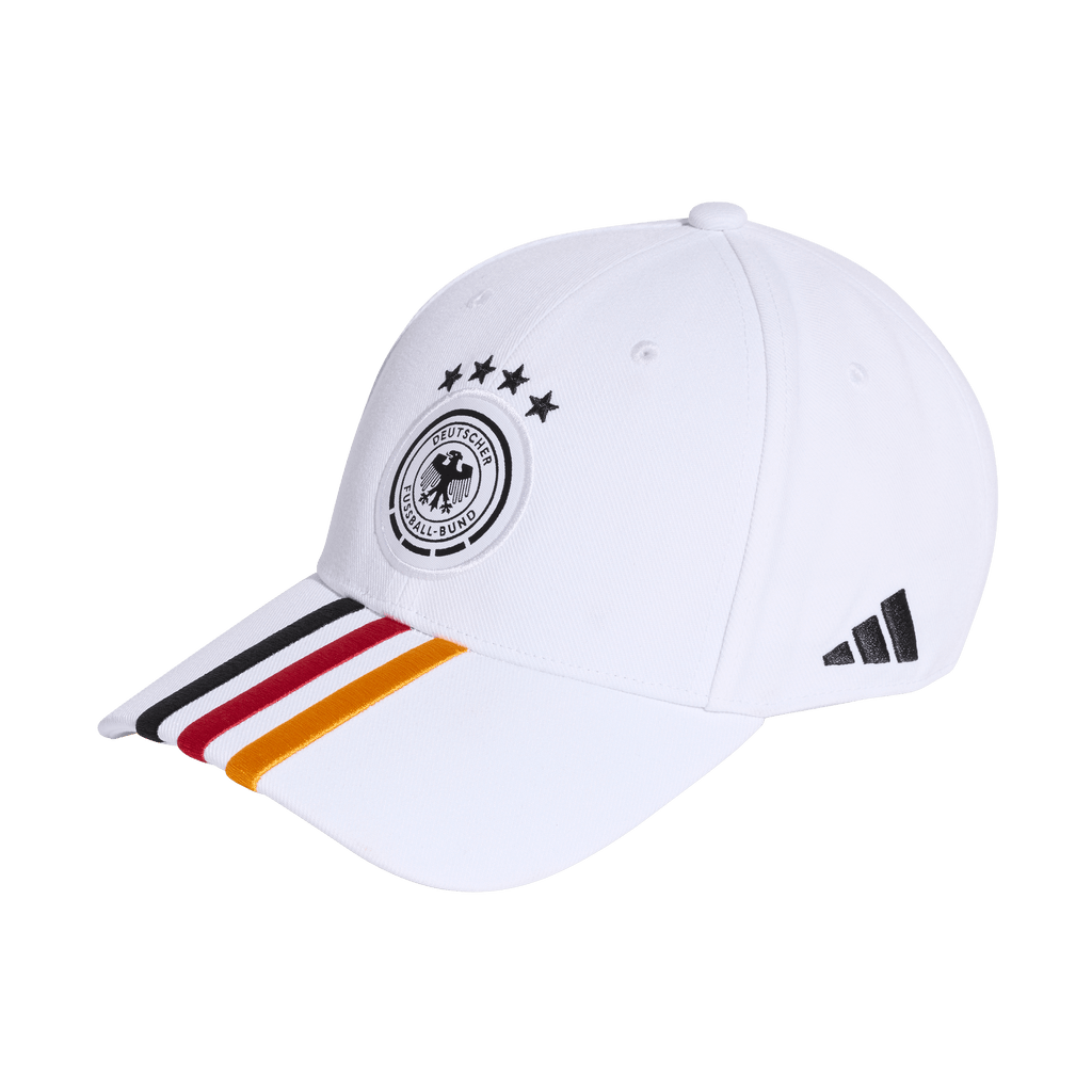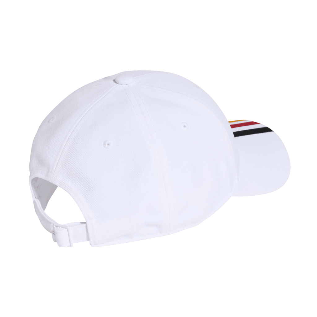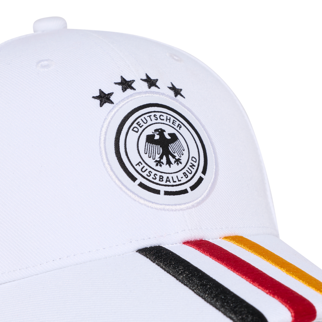 Cheer on the four-time world champions in style. Proudly displaying an embroidered crest on the crown, this adidas football cap shows your support for the Germany national team wherever you go. Its pre-curved brim keeps the sun out of your eyes so you can focus on the action on the pitch. Around the back, an adjustable strap ensures you find the perfect fit.